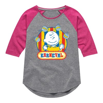 Girls' - Peanuts - Charlie Brown Tour Shirt Tail Raglan Graphic T-shirt