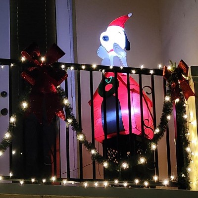 Celebrate the season with an Airblown® Inflatable featuring Snoopy atop his iconic red dog house. Accented with a wreath, this Peanuts inflatable makes an eye-catching addition to your outdoor Christmas decoartions. Setup is super simple. Just plug it in, stake it down and watch the magic unfold. Display this Snoopy Christmas inflatable as a standalone or combine it with other Airblown Inflatables to create a custom scene. Includes everything needed for easy setup.