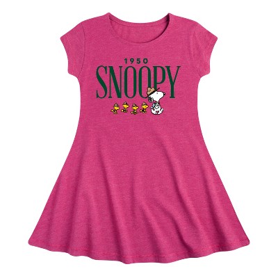 Peanuts - Daddy's Little Camper - Toddler And Youth Girls Fit And Flare Dress - From the best-loved comic strip in history comes officially licensed PEANUTS apparel for fans everywhere. Show your love for Charlie Brown, Snoopy, Woodstock, Lucy, Linus, Pigpen and the whole gang. Copyright Peanuts.