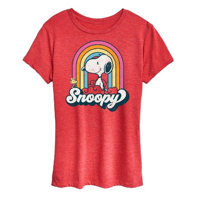 Women's Peanuts Feelin' Groovy Snoopy and Woodstock Short Sleeve Graphic T-Shirt - Heather Red - 2 X-Large