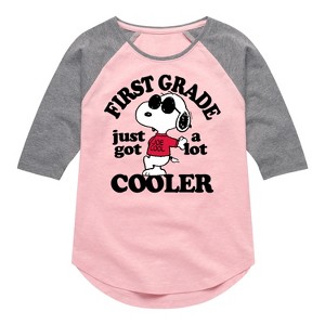 Peanuts - First Grade Just Cooler - Toddler And Youth Girls Raglan Graphic T-Shirt - From the best-loved comic strip in history comes officially licensed PEANUTS apparel for fans everywhere. Show your love for Charlie Brown, Snoopy, Woodstock, Lucy, Linus, Pigpen and the whole gang. Copyright Peanuts.