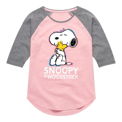 Girls' Peanuts Follow The Rainbow Shirt Tail Raglan Graphic T-shirt - Light Pink/Ath Hea - Medium