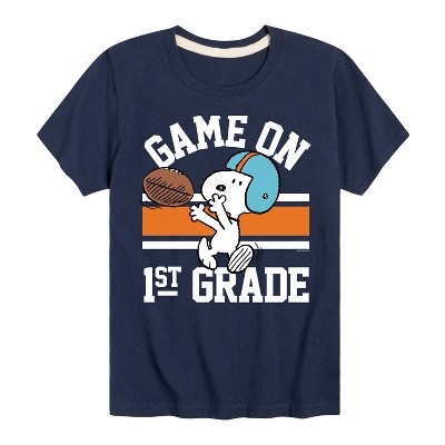 Peanuts - Game On 1st Grade - Toddler And Youth Long Sleeve Graphic T-Shirt - From the best-loved comic strip in history comes officially licensed PEANUTS apparel for fans everywhere. Show your love for Charlie Brown, Snoopy, Woodstock, Lucy, Linus, Pigpen and the whole gang. Copyright Peanuts.