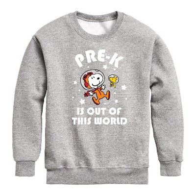 Peanuts - Game On Pre-K - Toddler And Youth Crewneck Fleece Sweatshirt - From the best-loved comic strip in history comes officially licensed PEANUTS apparel for fans everywhere. Show your love for Charlie Brown, Snoopy, Woodstock, Lucy, Linus, Pigpen and the whole gang. Copyright Peanuts.