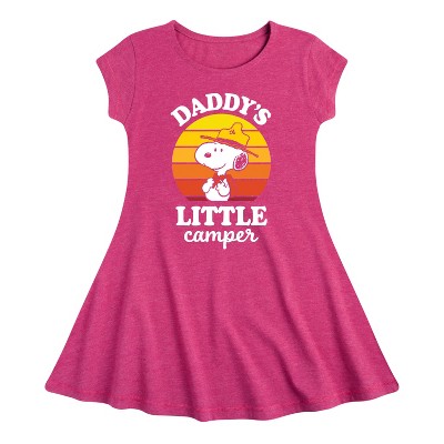 Peanuts Girl Crew Fit & Flair Cap Sleeve Graphic Dress - Heather Fuchsia - 2T