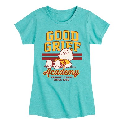 Peanuts - Good Grief Academy - Toddler & Youth Short Sleeve Graphic T-Shirt - From the best-loved comic strip in history comes officially licensed PEANUTS apparel for fans everywhere. Show your love for Charlie Brown, Snoopy, Woodstock, Lucy, Linus, Pigpen and the whole gang. Copyright Peanuts.