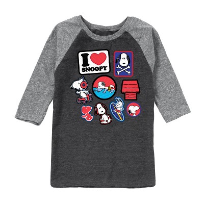 Peanuts - Graffiti Snoopy - Toddler And Youth Raglan Graphic T-Shirt - From the best-loved comic strip in history comes officially licensed PEANUTS apparel for fans everywhere. Show your love for Charlie Brown, Snoopy, Woodstock, Lucy, Linus, Pigpen and the whole gang. Copyright Peanuts.
