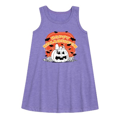 Girls' Peanuts Halloween Spirits Graphic Sleeveless Aline Dress - Purple - Medium