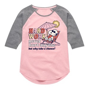 Girls' - Peanuts - Hard Work Shirt Tail Raglan Graphic T-shirt