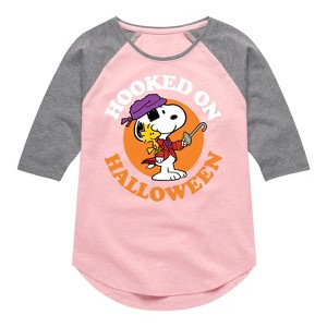 Peanuts - Hooked On Halloween - Toddler And Youth Girls Raglan Graphic T-Shirt - From the best-loved comic strip in history comes officially licensed PEANUTS apparel for fans everywhere. Show your love for Charlie Brown, Snoopy, Woodstock, Lucy, Linus, Pigpen and the whole gang. Copyright Peanuts.
