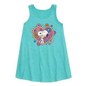 Girls' - Peanuts - Hug Heart Flower Graphic Sleeveless Aline Dress - 1 of 4