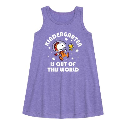 Peanuts - Kindergarten Just Got Cooler - Back to School - Toddler and Youth Girls A-line Dress - From the best-loved comic strip in history comes officially licensed PEANUTS apparel for fans everywhere. Show your love for Charlie Brown, Snoopy, Woodstock, Lucy, Linus, Pigpen and the whole gang. Copyright Peanuts.