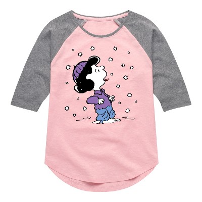 Girls' Peanuts Lucy I Seized The Wrong Day Shirt Tail Raglan Graphic T-shirt - Light Pink/Ath Hea - Medium