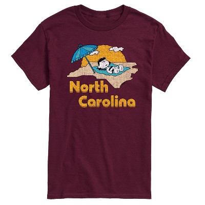 Peanuts - North Carolina Lucy - Men's Short Sleeve Graphic T-Shirt - From the best-loved comic strip in history comes officially licensed PEANUTS apparel for fans everywhere. Show your love for Charlie Brown, Snoopy, Woodstock, Lucy, Linus, Pigpen and the whole gang. Copyright Peanuts.