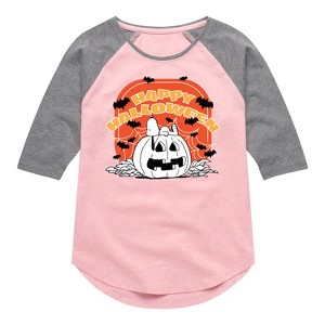 Girls' - Peanuts - Peanuts Retro Halloween Shirt Tail Raglan Graphic T-shirt