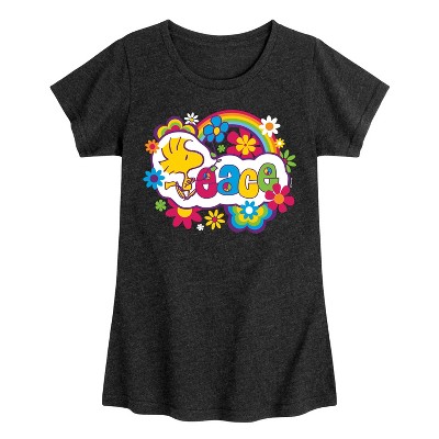 Peanuts - Psychedelic Color Burst Woodstock - Peace - Toddler & Youth Girls Short Sleeve Graphic T-Shirt - From the best-loved comic strip in history comes officially licensed PEANUTS apparel for fans everywhere. Show your love for Charlie Brown, Snoopy, Woodstock, Lucy, Linus, Pigpen and the whole gang. Copyright Peanuts.