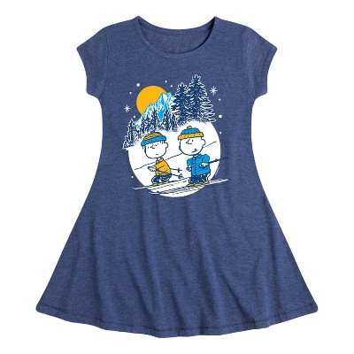 Snoopy and Friends Skiing - Toddler And Youth Girls Fit And Flare Dress - From the best-loved comic strip in history comes officially licensed PEANUTS apparel for fans everywhere. Show your love for Charlie Brown, Snoopy, Woodstock, Lucy, Linus, Pigpen and the whole gang. Copyright Peanuts.