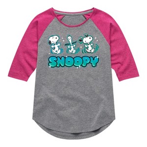 Peanuts - Snoopy - Toddler & Youth Girls Raglan Graphic T-Shirt - From the best-loved comic strip in history comes officially licensed PEANUTS apparel for fans everywhere. Show your love for Charlie Brown, Snoopy, Woodstock, Lucy, Linus, Pigpen and the whole gang. Copyright Peanuts.