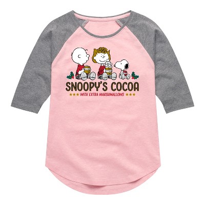 Peanuts - Snoopy Christmas Cookies and Cocoa - Toddler And Youth Girls Raglan Graphic T-Shirt - From the best-loved comic strip in history comes officially licensed PEANUTS apparel for fans everywhere. Show your love for Charlie Brown, Snoopy, Woodstock, Lucy, Linus, Pigpen and the whole gang. Copyright Peanuts.