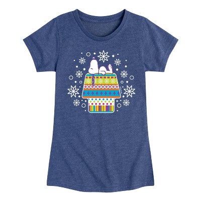 Boys' Peanuts Snoopy Christmas Doghouse Short Sleeve Graphic T-Shirt - Scandinavian Snoopy - Royal Blue - 3T