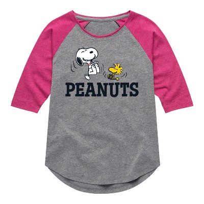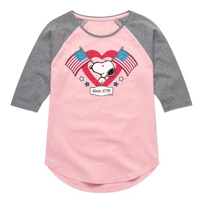 Girls' - Peanuts - Snoopy Flag Heart Shirt Tail Raglan Graphic T-shirt