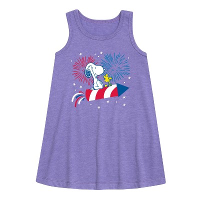 Girls' - Peanuts - Snoopy Flag Heart Graphic Sleeveless Aline Dress - 1 of 3