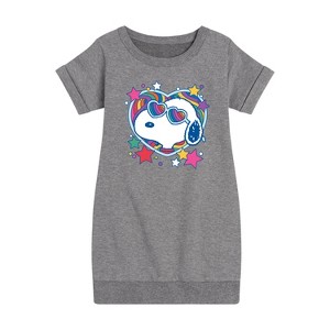 Girls' - Peanuts - Snoopy Groovy Heart Graphic Short Sleeve Fleece Dress - 1 of 3
