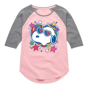 Girls' - Peanuts - Snoopy Groovy Heart Shirt Tail Raglan Graphic T-shirt