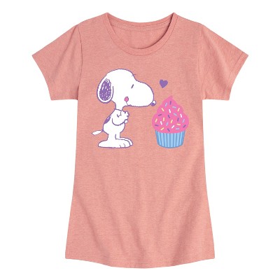 Peanuts - Snoopy Heart Cupcake - Youth Girls Raglan Tee - From the best-loved comic strip in history comes officially licensed PEANUTS apparel for fans everywhere. Show your love for Charlie Brown, Snoopy, Woodstock, Lucy, Linus, Pigpen and the whole gang. Copyright Peanuts.
