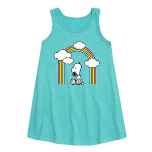 Girls' - Peanuts - Snoopy Looking Up Rainbow Graphic Sleeveless Aline Dress - 1 of 4