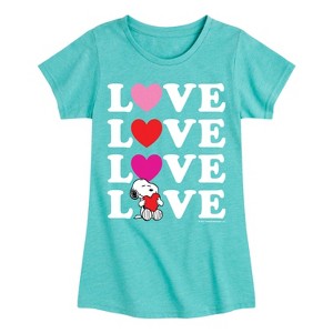 Girls' - Peanuts - Snoopy Love Stacked Fitted Short Sleeve Graphic T-Shirt - 1 of 4