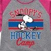 Peanuts - Snoopy's Hockey Camp - Toddler And Youth Girls Raglan Graphic T-Shirt - From the best-loved comic strip in history comes officially licensed PEANUTS apparel for fans everywhere. Show your love for Charlie Brown, Snoopy, Woodstock, Lucy, Linus, Pigpen and the whole gang. Copyright Peanuts.
