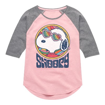 Girls' Peanuts Snoopy Sledding Shirt Tail Raglan Graphic T-shirt - Athletic Heather/Fuchsia - Large