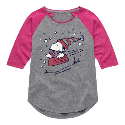 Girls' - Peanuts - Snoopy Sledding Fitted Short Sleeve Graphic T-Shirt
