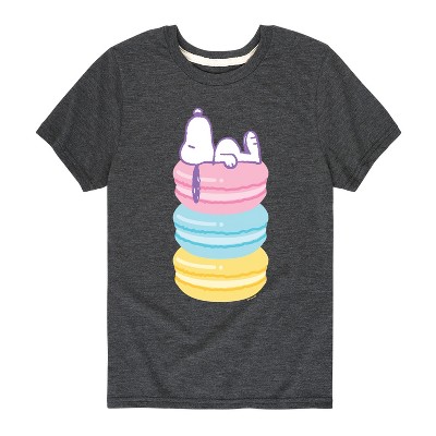 Peanuts - Snoopy Stacked Macarons - Youth Girls Raglan Tee - From the best-loved comic strip in history comes officially licensed PEANUTS apparel for fans everywhere. Show your love for Charlie Brown, Snoopy, Woodstock, Lucy, Linus, Pigpen and the whole gang. Copyright Peanuts.