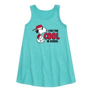 Girls' - Peanuts - Snoopy I Put the Cool in School Graphic Sleeveless Aline Dress - 1 of 4