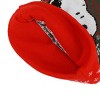 Get into the holiday spirit with this red and green Peanuts Santa hat featuring Snoopy holding a present against a festive snowflake pattern. Made with durable acrylic yarn, this hat is perfect for adding a cheerful touch to your winter wardrobe. For the best care, hand wash it in cold water and lay it flat to dry to maintain its holiday charm.
