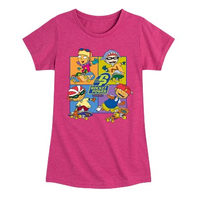 Girls' Peanuts Snoopy Woodstock Skate Fitted Short Sleeve Graphic T-Shirt - Heather Fuchsia - 2T