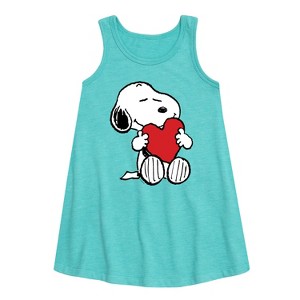 Girls' - Peanuts - Valentine's Hugging Heart Graphic Sleeveless Aline Dress - 1 of 4
