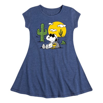 Peanuts Vampire Snoopy and Woodstock Fit & Flair Cap Sleeve Graphic Dress - Heather Navy - 2T