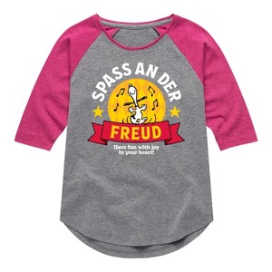 Peanuts - Snoopy Spass An Der Freud - Toddler & Youth Girls Raglan Graphic T-Shirt - From the best-loved comic strip in history comes officially licensed PEANUTS apparel for fans everywhere. Show your love for Charlie Brown, Snoopy, Woodstock, Lucy, Linus, Pigpen and the whole gang. Copyright Peanuts.