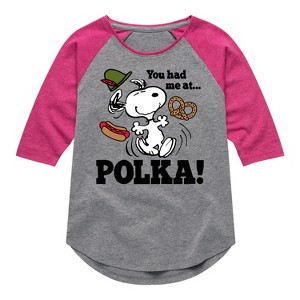 Girls' Peanuts You Had Me At Polka Shirt Tail Raglan Graphic T-shirt - Athletic Heather/Fuchsia - 2T