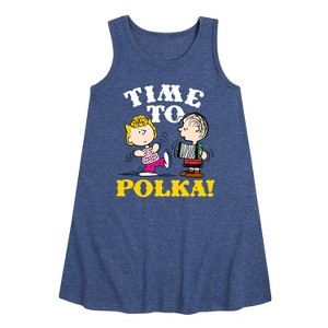 Peanuts - Time To Polka - Toddler & Youth Girls A-line Dress - From the best-loved comic strip in history comes officially licensed PEANUTS apparel for fans everywhere. Show your love for Charlie Brown, Snoopy, Woodstock, Lucy, Linus, Pigpen and the whole gang. Copyright Peanuts.