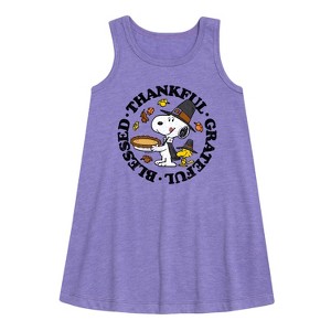 Girls' - Peanuts - Thankful, Grateful, Blessed Graphic Sleeveless Aline Dress - 1 of 4