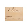 - Includes wooden sign engraved with “hello my name is,” “I was born on,” “time,” “weight,” and “height” and a black pen to write in all of baby’s personalized information