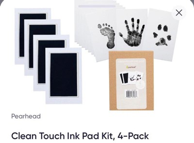 Introducing Pearhead’s 4-Pack Clean Touch Ink Pad Kit, the perfect solution for capturing the adorable handprints, footprints, and pawprints of your little ones and furry friends. Our ink pads are specially designed to create highly detailed prints without any ink ever touching the skin. Our impression making kit is mess-free and safe for both babies and pets, ensuring a worry-free experience. With non-toxic ink, you can easily create adorable milestone keepsakes that last a lifetime. This set includes 4 clean-touch ink pads and 12 impression cards, ensuring you have plenty of opportunities to capture the perfect print. Simply place the ink pad face down and gently press your baby's hand or foot, or your pet's nose or paw, to create a beautiful impression. Use this DIY ink imprint kit to decorate baby memory books or scrapbooks or to make a special greeting card for a loved one. Our multi-pack is perfect for siblings, twins, cats and dogs with space to create special keepsakes for the whole family. This must-have keepsake makes a thoughtful gift for expecting parents and new pet owners. Give it to a loved one for a baby shower, Christmas gift, or birthday gift. Each ink pad has ink window of 2.5” by 3.5”.