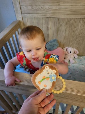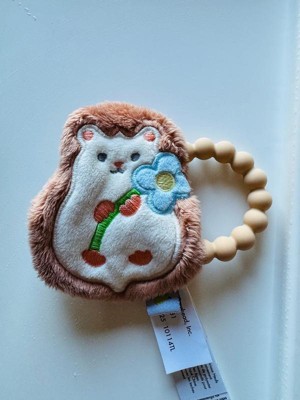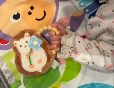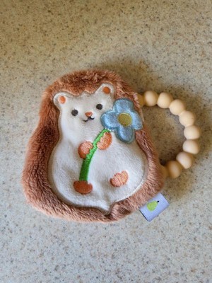[This review was collected as part of a promotion.] Cute and crinkly little hedgehog teether rattle! My baby loves banging it around and the ring seems to feel good on her gums as she munches on it. It’s quickly been one of the toys I reach for to take on the go. Pro tip - grab a paci clip and wrap it around the ring!