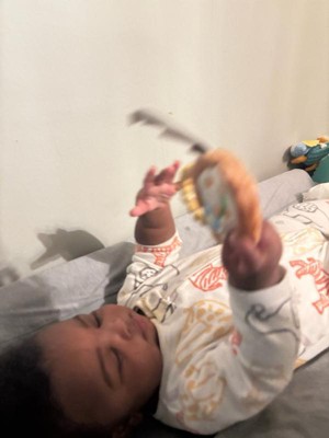 [This review was collected as part of a promotion.] It’s so cute the design of this animal, my baby loves it, the soundtrack of the material too, my baby is starting to do his teeths, so it’s helping a lot. Easy to wash and good manipulation for him.