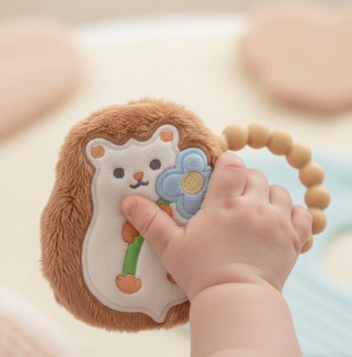 [This review was collected as part of a promotion.] This hedgehog crinkle teether is so cute and my daughter loves it! The soft plush and gentle crinkle sound keep her engaged, while the BPA-free silicone ring helps soothe her gums. It’s lightweight and easy for little hands to grab, helping her practice gripping. The packaging is neat and secure, no assembly needed, and it’s easy to store or toss in a diaper bag. A safe, adorable, and practical teether for everyday use! 👶