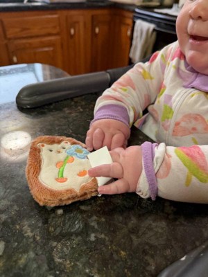 [This review was collected as part of a promotion.] This is the perfect little travel buddy for y little one. It clips easily into my diaper bag so it doesn’t get lost. The crinkling is perfect for her textile learning mind. It’s easy to clean and sanatize. It’s just the right size for her little hand. We love it so much!